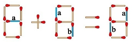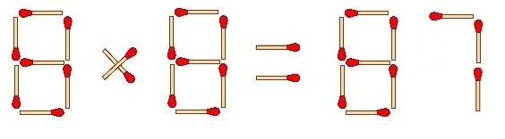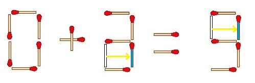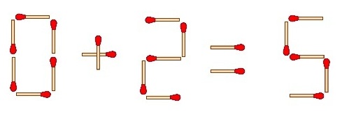 マッチ棒の画像を見て、マッチ棒を2本だけ動かして正しい式にするクイズです。