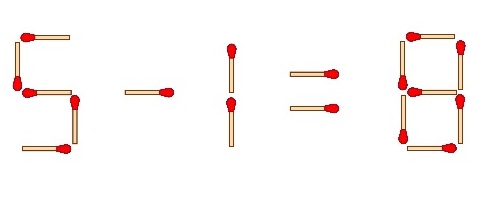 マッチ棒クイズ 1 マッチ棒クイズ 2026.02.082026.02.10Q.2 マッチ棒を1回動かして正しい式にせよ! 「問題」 式を見る Q1. どのマッチ棒(1本)を動かしますか?A1. (一つだけタップ)5A5B5C5D5E-A1A1B8A8B8C8D8E8F8G Q2. どこに動かしますか?A2.(一つだけタップ)5a5b-a 正解(説明)を見る 【正解】8Cのマッチ棒を―aに移動 前へ次へ 12345678