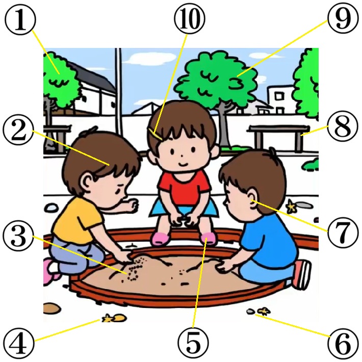 A. 3つの間違いの番号は?(下の番号をタップ)
