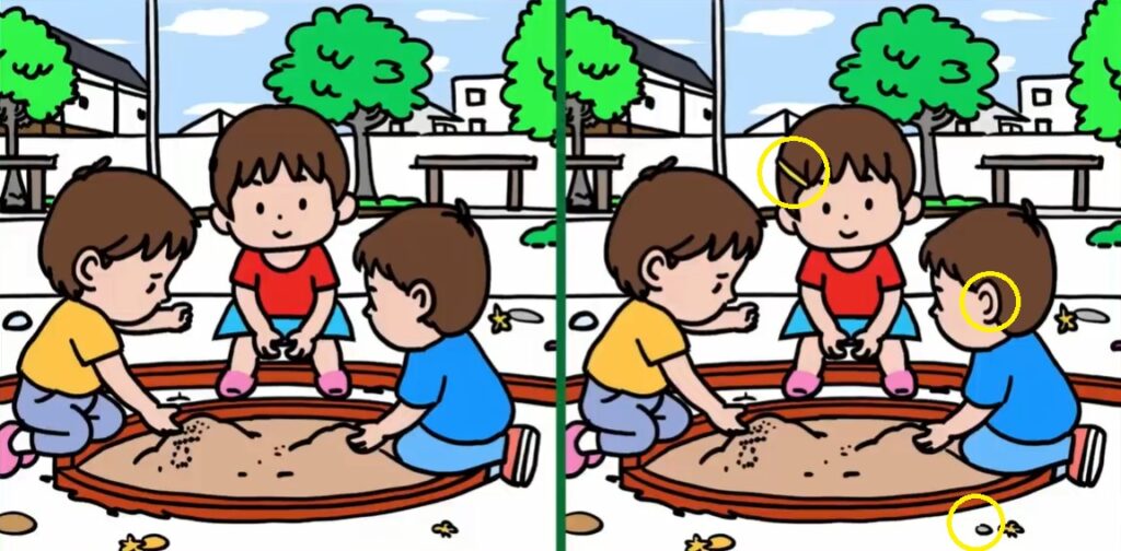 左右の二つの画像(60秒間)を見て、3つの間違いを当てるクイズです。あなたはいくつわかるかな?