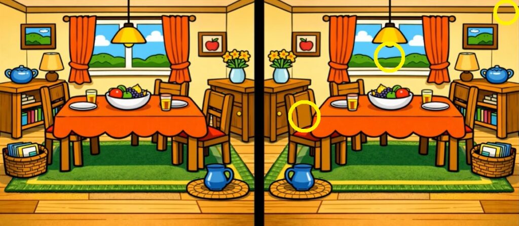 間違い探し 14 間違い探し 2026.04.09左右の二つの画像(60秒間)を見て、3つの間違いを当てるクイズです。あなたはいくつわかるかな? ※ 音量に注意して下さいQ. 間違い(3つ)を探したら、下に回答! 「問題」 画像を見る A. 3つの間違いの番号は?(下の番号をタップ) BGM停止12345678910 正 解 を 見 る 【正解】